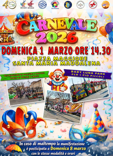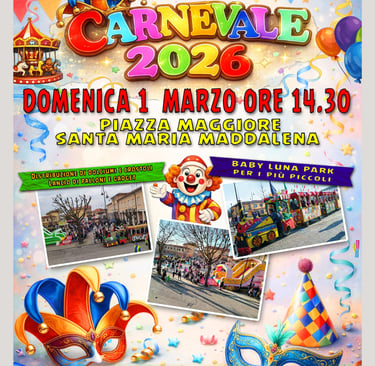 Domenica 1 marzo torna uno degli appuntamenti più attesi dell’anno: il Carnevale 2026 animerà Piazza Maggiore a Santa Maria Maddalena con un pomeriggio all’insegna del divertimento per grandi e piccoli.